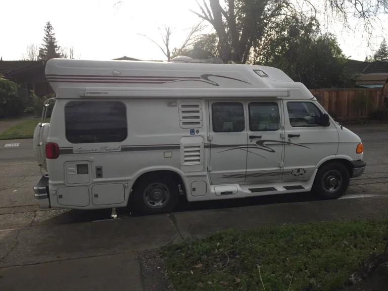 This is a gently used, very good condition, very low mileage, loved van that is easy to drive, parks in a regular parking space, and wonderful to travel in. The back dinette folds down into a two person bed, aka," love nest". The middle seats slide forward and merge with the turned in front seats to make smaller kid size beds, making it the perfect family travel van. Potty is a blessing, external shower, double gas stove, microwave. Clean, cared for, cherished. Removed top air conditioning unit due to seal issues so has no back A C but has A C while driving and roof top fan. Can pull into camp without much set up and just relax. new tires, brand new 19 in computer screen. Does not go to Burning Man or outside the U.S. non smoking van, no pets