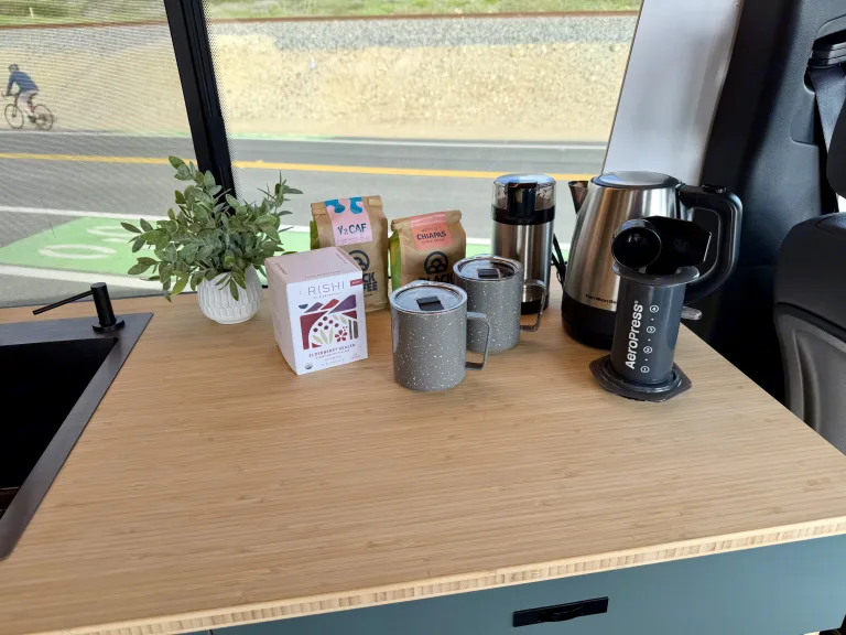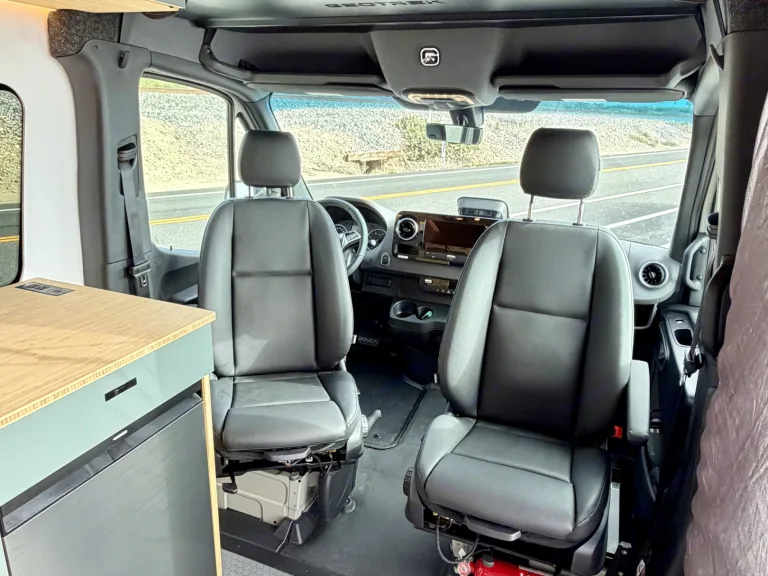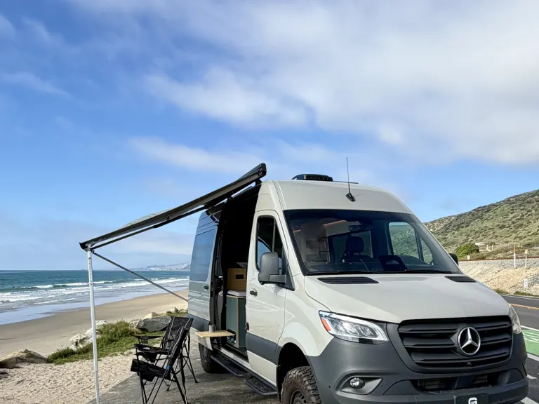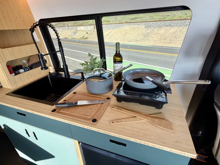 Meet Sven—your cozy, thoughtfully outfitted high roof, 144" Sprinter van designed by our friends at Geotrek for easy, comfortable adventures. Sven is perfect for couples (and their furry companion!) looking to slow down, explore beautiful places, and enjoy the freedom of the open road without sacrificing comfort.Inside, you’ll find a warm, functional setup with a comfortable bed, kitchen essentials, and smart storage—everything you need and nothing you don’t. Sven is ideal for long weekend getaways, coastal road trips, national park adventures, or your first taste of vanlife.Sven was designed with mindful travel in mind: simple systems, an uncluttered layout, and a calm, cozy vibe that lets you focus on the experience—not the logistics. Whether you’re chasing sunsets, working remotely from somewhere beautiful, or just craving a reset, Sven’s got you covered.Hop in, roll the windows down, and let Sven take you there.What's included• Plates, bowls, silverware