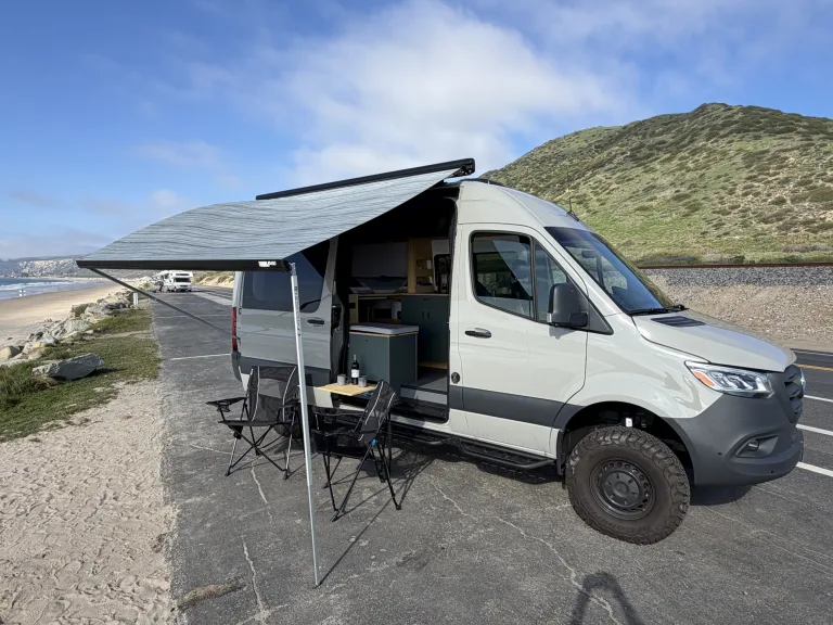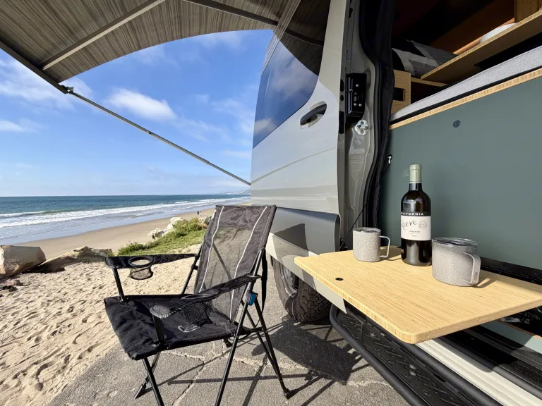 Hi! We’re Ali & Drew — mindful travelers who split our time between Minnesota and California and believe the best adventures are the ones that feel easy and intentional. We got Sven to be a cozy, comfortable home on wheels and love sharing him with people who value slowing down, exploring beautiful places, and treating our planet with care!