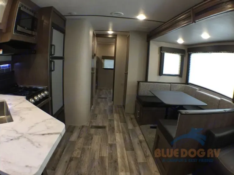 Double your fun with this Hideout travel trailer. From the spacious double slide outs to the rear bunkhouse for your kids, you won't be lacking for space throughout this travel trailer. In the kitchen you will find a walk-in pantry and you can enjoy your meals and reminiscing about your day around the U-Niversal dinette. This model also has two entry doors and the rear door conveniently leads into the bathroom. The chef in the family will enjoy the convenience of the outdoor kitchen. Here you can easily whip up a snack or meal for your family.For any trip whether near or far you will want a Hideout travel trailer by Keystone RV. These models are lightweight which makes them easy to hook-up and tow. Just load up your belongings and head out for a weekend away in your own Hideout retreat. Inside you will find surround sound speakers, a Bluetooth DVD/CD/MP3 stereo, as well as a range with hi-output burner and a high rise kitchen faucet. The drawers are easy to open and close with the ball bearing drawer guides plus with the 6 cu. ft. refrigerator you can easily stock up on all of the food that you will need while you are away from home.