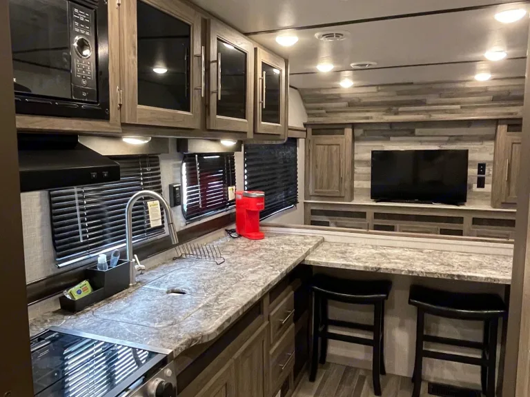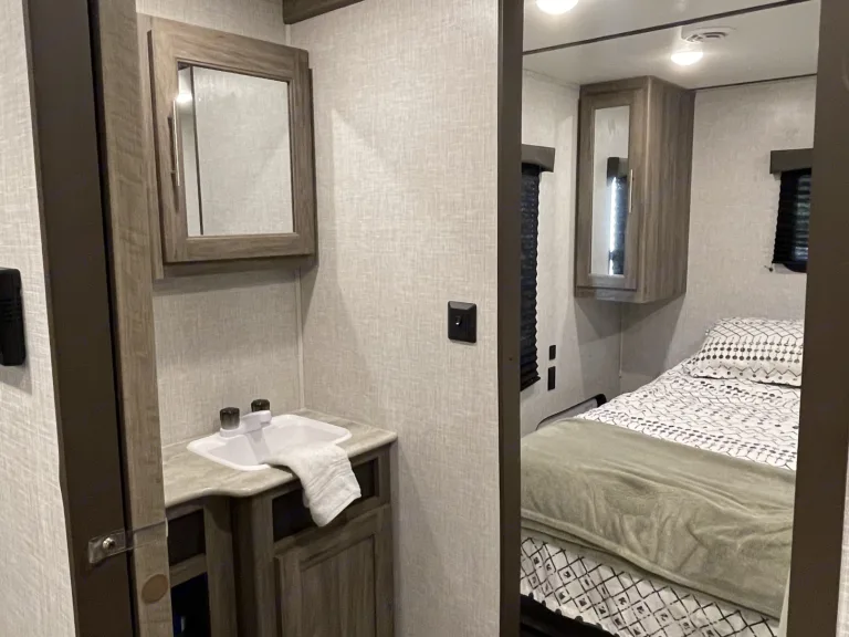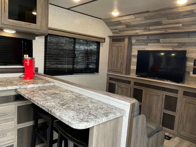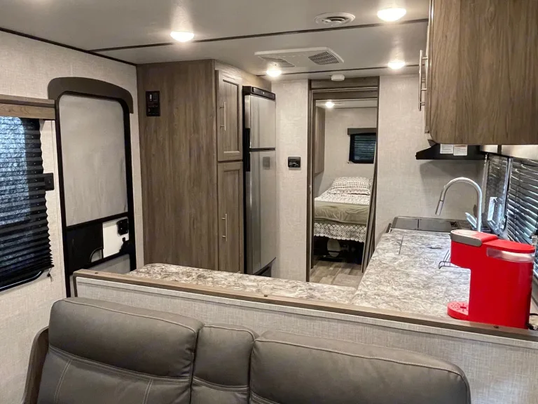 This beautiful RV has everything you need for a great escape. We will deliver and set up the Wandering Bungalow to you desired campground, fully stocked with everything you could need.This RV has a queen bed and jack-knife sofa that converts into a bed. A large kitchen with tons of prep space, and a residential fridge, for tons of storage.If you have any questions, please feel free to reach out to us. We are happy to help you book your next camping adventure.CheersKaleb and JaydaFind us on Facebook @ Awtrey OutdoorsAwtrey Outdoors RV