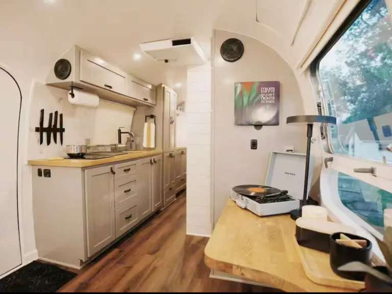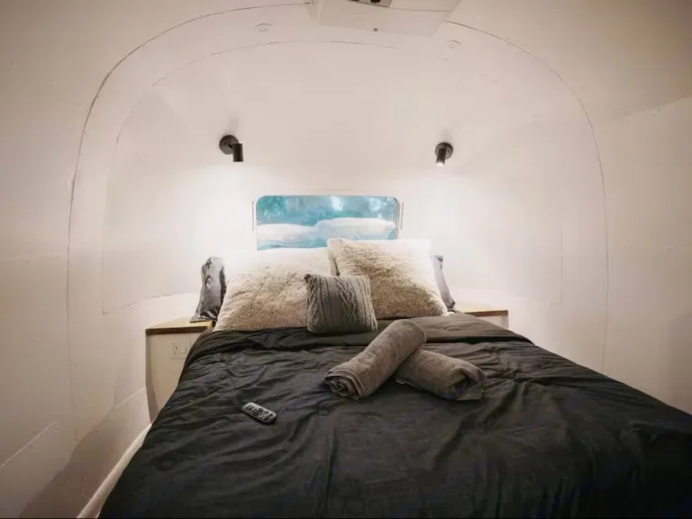 This beautifully renovated Airstream offers a unique retreat, perfect for a romantic getaway or any special occasion. Nestled in a scenic spot, the exterior gives way to a cozy, luxurious interior. The Airstream features all the modern amenities you need, including a compact kitchenette and a chic, spa-like bathroom, ensuring comfort and style. Step outside to a private deck with a fire pit, where you can stargaze and enjoy an outdoor movie, creating unforgettable memories under the night sky!What's includedA/C