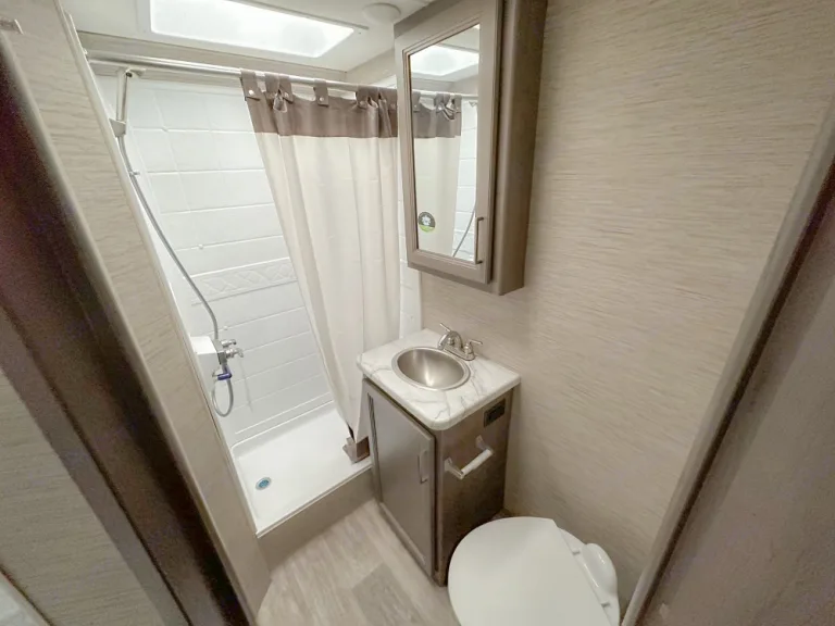 Very low mileage. Like a new RV.Perfect size for Road Tripping. Drives easy like a 24ʻ but has the space of a 30ʻ.Sleeps 4 very comfortably with a convertible dinette making room for 2 kids. Use it to eat, chill, or sleep.Separate Master Bedroom offers plenty of space and privacy. Master Armoir slides out to give you the space for lots of luggage without being in your way.Rare floorplan with divided bathroom allowing one person to get ready while the other showers.Massive outside storage with plenty of room for anything you bring along on your Journey.Outside propane hook up with hose so you dont have to bring along all the little cans.Never miss a thing with 3 TV's, including a very large one in the dining area, 1 in Bedroom, and even an outside TV. Roku enabled for streaming your favorites.Assorted games for rainy days.