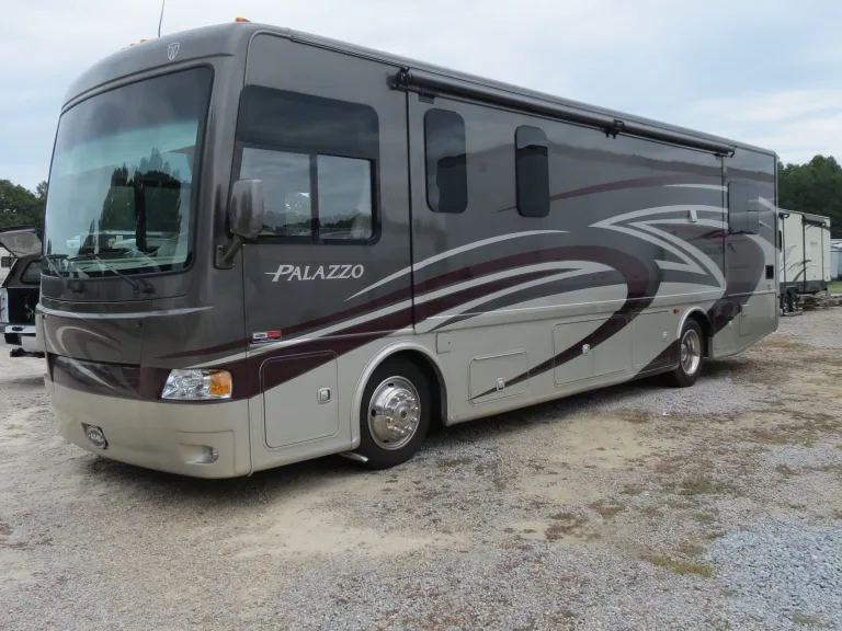2015 Thor Palazzo 33.2 34'8 Class A Motorhome. 2 Slide Outs. Sleeps 6.Front Overhead Bunk, Dinette, fold-out Sofa, and 60"x80" Queen Bed for sleeping up to 6 adults and 2 children.