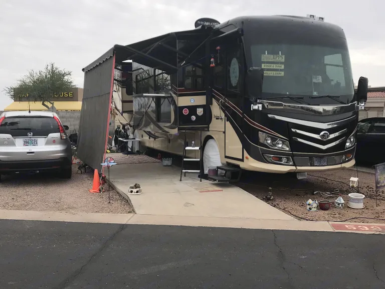 44 ft of luxury. Refrigerator, freezer, dish washer, washer dryer, bath and 1/2, king size bed. Four Tv ‘s and fire place.