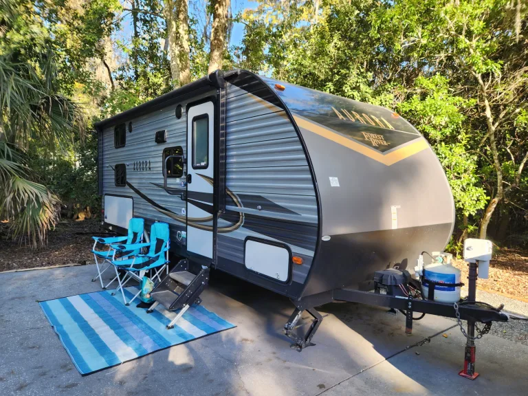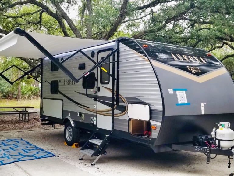 We also provide a propane tank but amount of propane will be whatever it was when it was returned last. If you want a full tank please use the propane add on and we will guarantee a full tank for your trip.RecommendationsAurora has been all around the state and has even seen the mountains. She does well at beach sites with her outside hose to wash off sandy gear and feet. She also does great boondocking with her solar panel and propane options(But she cant run AC/Heat or fridge if she is off grid) She has also visited Mickey and Friends at Fort Wilderness many times and had deer, squirrels, birds on and around her and even right under her awning(much to our surprise even though she is named after a princess)Other things to noteWe ask that you clean any cookware you use. We ask that you clean any excessive things that might occur like spills, accidents or excessive dirt tracking in. Mostly treat it like your own home. Just don't worry about the laundry and/or disinfecting - Your on vacation so go explore!! Just make sure to leave us a note in our journal so we can read what Aurora got into when she was out