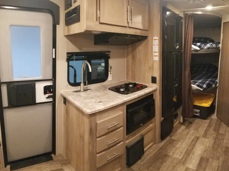 Like new travel trailer with lots of bells and whistles. Double sized bunk beds, Queen master that folds up to allow sofa seating during the day. Full bathroom with bathroom sink. U-Shaped dinette on a slide out for extra room. 15 foot power awing with built in lights. JBL speaker sound system. Out door camper kitchen with fridge and grill under awning. Take it or have it delivered to locations like Walt Disney's Wilderness Lodge, Titusville to watch SpaceX rockets send people to space, or one of the hundreds of Sunny Florida Campgrounds!! Family owned and operated so feel free to ask about the many places we have camped as a family.What's includedThe following are all provided: