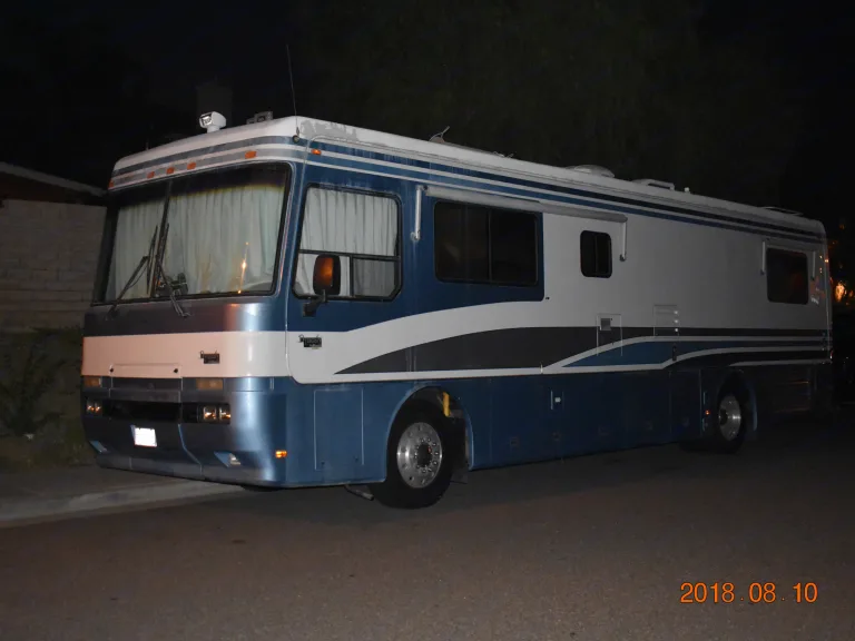 this rv is fully equipped with every feature a family could ask for. it has a powerful diesel engine and generator. two AC units to keep you cool. lots of storage. solar panels.