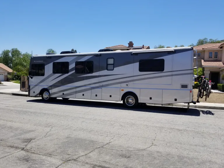 With just over 38’ of space, 3 slide outs, and plenty of extra storage, this immaculately kept RV will be sure to meet whatever need you may have. Sleeping 6, our home away from home features a queen bed in the master, with a sofa that pulls out into a queen bed and a dining table that folds down into a small bed fit for 2 kids in the front. Dual air conditioners and a heater will ensure that your trip is spent in comfort. Full-sized kitchen with stove, oven, microwave, and 2 door fridge/freezer. No need to bother with the fuss of lugging along your pots, pans, and utensils, as everything will be included for your use. A full bathroom with toilet, sink, and shower, you’ll never have to worry about visiting grimy public restrooms; and an outdoor shower makes this a perfect fit for beach camping. Backup camera and leveling jacks make parking and setup a smooth operation. 2 awnings can provide all the shade you could possibly need from the sun. With the 7500-watt generator, you can enjoy the TV with DVD player, satellite, CD player, and radio, rain or shine, with or without hookups. With this little slice of heaven, any vacation you take will seem like a dream, and so much more!Everything you could possibly need will be kept in the RV for your use, including:
