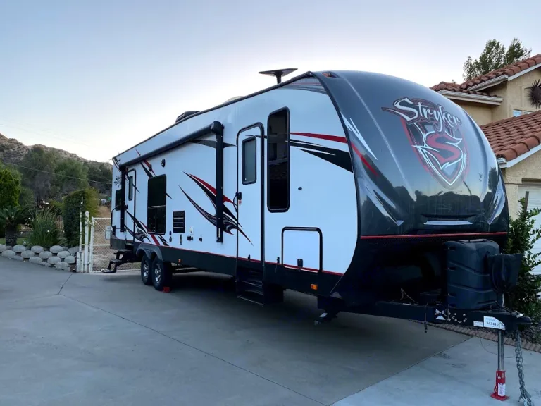 The 2017 Stryker is a 30ft toyhauler that is great to take along toys and the whole family with you when camping. The trailer has a king size bed in the master bedroom and 2 queen size beds and 1 twin size in the main room. Linens can be provided for 2 beds. Or removed upon request. Then it still has room for your gear. The 100gal water tank will let you dry camp for longer all with all the amenities of a small condo on wheels. Bathroom with shower, kitchen with large stainless steel sink, 8 cu ft refrigerator, and 10 gal hot water gas/electric heater. For your toys there is a 30gal fuel station that also feeds the built in 4500 watt generator. The Stryker has a 16ft cargo space and this trailer has a motorcycle bar that will be included with no charge upon request. The motorcycle rail bar can hold 5 bikes. Or it can fit a 4-seater side by side with the 7-8' barrel ceiling, 102" wide body construction, and 8ft ramp door rated for 3000lbs. LED lighting throughout and dual batteries allow for longer battery use. Trailer is insulated for winter weather and has 2 - 7gal (30lb) propane tanks for heater use on cold nights. On those warm days there is a 15,000 BTU ducted air conditioner.