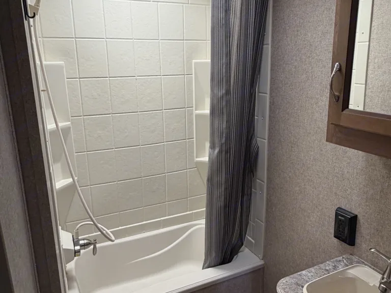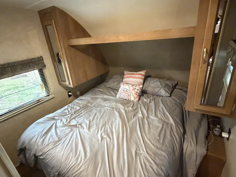 Relax under the awning with music, enjoying comfort with AC and hot water.