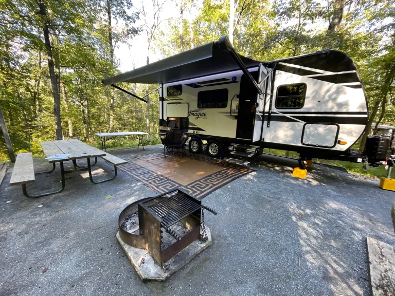 No need to go to the public campsite shower rooms. This trailer has an upgraded, tankless hot water heater which provides unlimited hot water for those extra long hot showers as well as doing the dishes. You can make meals using the outdoor kitchen and store extra beverages in the 1.6 cu. ft. refrigerator, and relax under the powered electric awning with lighting and outdoor bluetooth speaker system. When you are inside, relax and dine at the booth dinette and make full meals using the kitchen amenities including a double door refrigerator/freezer and deep well, stainless steel sink. The pantry is large enough to accommodate all of your essential food and snacks. Your kids will love the double-size bunk beds complete with privacy curtains, lights and individual usb charging ports to keep tablets and phones charged, and you will enjoy your own queen size Murphy bed. There are cubbies on each side of the Murphy bed with USB charging ports and 120v outlets to keep your phones and Cpap machines running through the night. The Murphy bed has its own privacy curtain as well. Don't worry about leaving the trailer and forgetting to grab the keys, this trailer has been upgraded with a keyless entry system. Cool, Color Changing LED mood lighting throughout the trailer adds a relaxing ambience at night. Grand Design is well known in the industry as one of the leaders in design and quality and this trailer is no exception.Your delivery fee includes delivery of this trailer to your destination within a 50 mile radius (delivery available up to 100 miles, additional fee will apply per mile), so no need to worry about having a vehicle to tow this with. Just let me know where you want it and I will handle the rest. This includes the setup and breakdown of water, electricity, and sewer and the complete breakdown of the trailer including sewer dumping after your rental is complete.What's includedWe offer the following with every rental; Paper plates and bowls, plastic cutlery, plastic cups, 2 rolls of paper towels, 4 rolls of RV specific toilet paper, cookware (pots and pans), dish towels, Keurig coffee maker with 4 coffee mugs, toaster, large outside camping rug, and several headlight flashlights. All of these included items help make your camping trip less stressful so you can focus on why you're camping in the first place. To have FUN!Setup, Walkthrough and Breakdown including Black and Grey Tank Dump & Flush is included with the delivery fee.RecommendationsWe have been to Cherry Hill near D.C., which we absolutely love, lots of fun. Most KOA's and Jellystone Campgrounds offer really fun amenities for the kids. If it's a couple's retreat look into Buttonwood and Lake In-wood resorts for a quieter, more relaxed, adult style retreat. We have enjoyed numerous campgrounds and resorts and continue to use the trailer on days we are not renting it. Once you experience Glamping, you just cannot get enough.Other things to noteThe trailer must be returned clean. Trash, spills and messes must be taken care of or an additional cleaning fee of $150 WILL apply.If excessively dirty a fee of up to $250 will be assessed for a professional cleaning company to deep clean and sanitize.We don’t allow pets or smoking in our travel trailer AT ANY TIME. If evidence of smoking or pets is found, you will forfeit your entire security deposit of $500.Refueling Fee - The RV is equipped with two 20 lb. propane tanks. Renter will be responsible to return RV with full tanks. Each tank will incur a $25 refueling fee if necessary.Our Red Carpet Service requires a $150 delivery fee up to a 50 mile radius, this includes delivery and pickup to your campsite or destination. Any mileage after the initial 50 will incur a charge of $5/mile. We do suggest when booking your campsite, you book a site with FULL HOOKUPS, this way, the grey tank can remain open to accommodate those long hot showers.We do not offer the towing of our trailer.