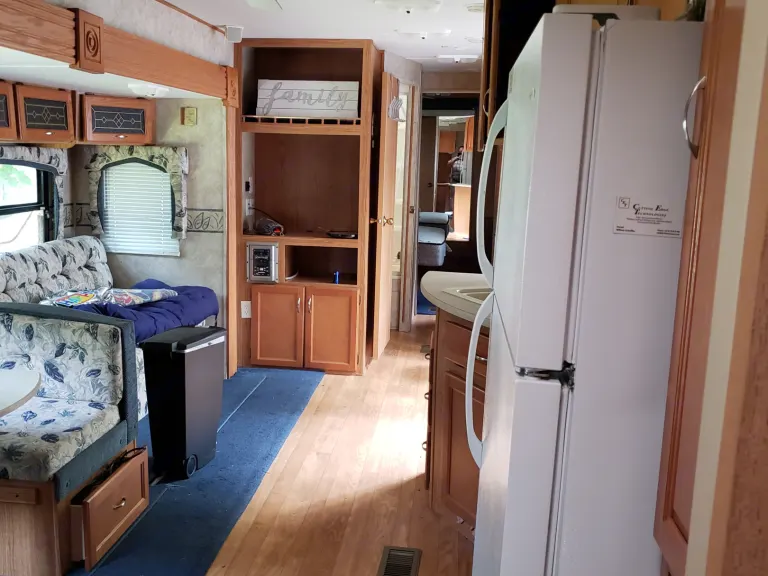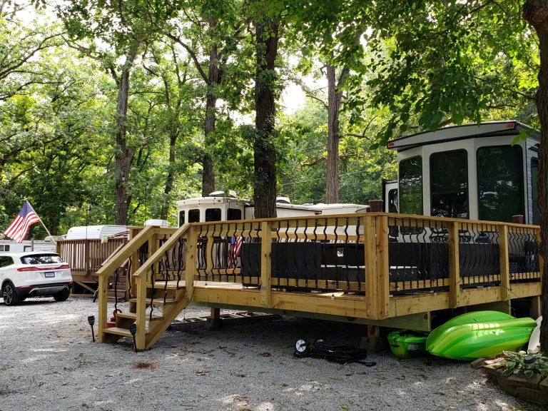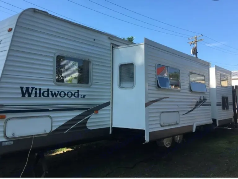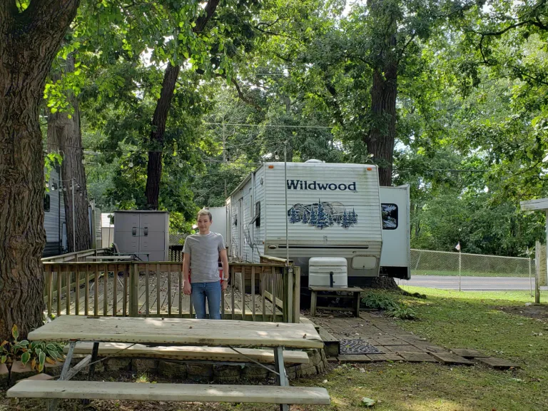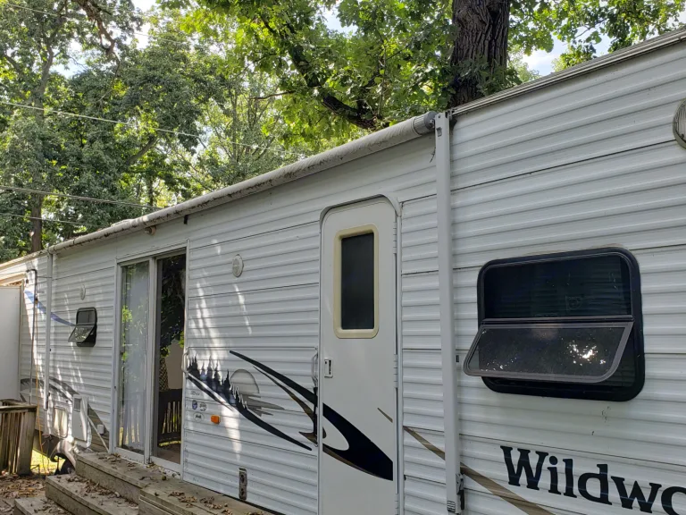 Stationary Wildwood trailer located in Pine Crest Lakeview campground