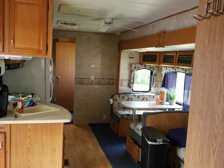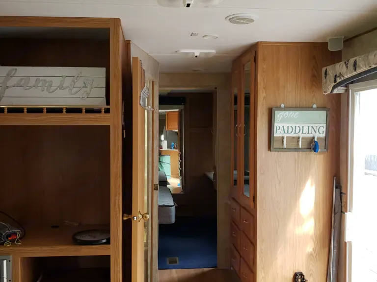 This camper is in a fixed location with a large attached deck. This camper comfortably sleeps 6 and is located 50 yards from Beautiful Cedar Lake. Sorry , no pets or smoking inside the camper at any time. Bring your boat or jetski. Check in or check out any day of the week between 10am and 3pm.What's includedBed sheets, toiletries, blankets, silverware, pots,pans and platesRecommendationsEnjoy fine dinning at the Light House restaurant, swimming and fishing. Kayak rentals located at Bugaboo Restaurant and lounge and ice cream from the Dairy Bell and boat rental from the North Shore Marina which all are accessible by boat.