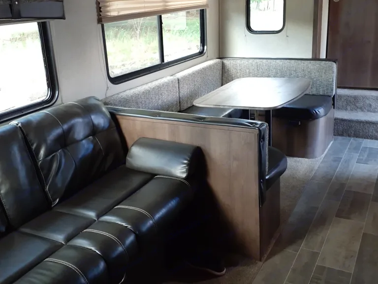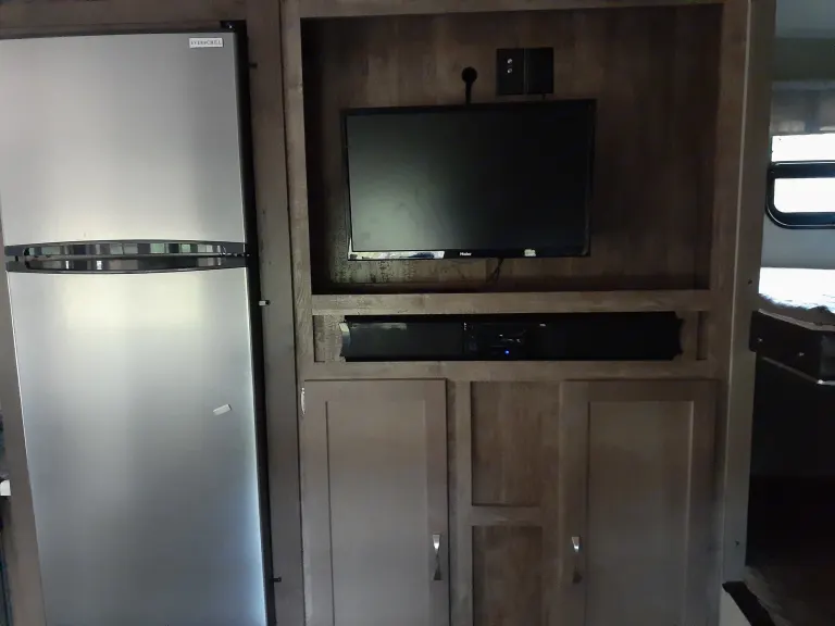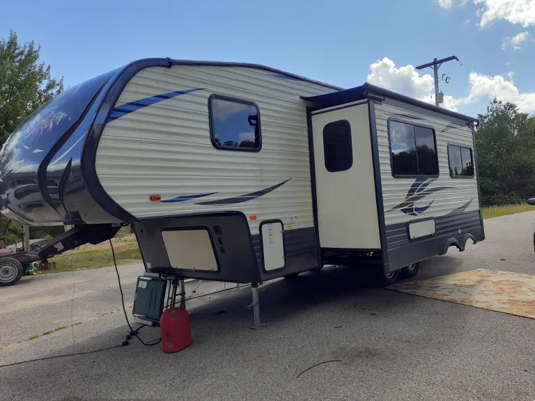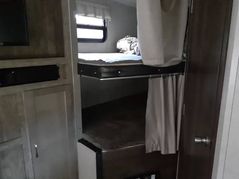 This fifth wheel comfortably sleeps 6 and includes 2 large bunk beds for the kids. Lighted awning, full kitchen and bathroom, and outside grill and shower. Pets are welcome!What's includedWe will provide a camping mat, foldout chairs, basic cooking items like pots and pans and a crock pot. There are also games and camp cookers in the unit. The unit has extra storage for all your camping gear.RecommendationsCamp anywhere! This is great for rustic camping or campgrounds.Other things to noteNo smoking inside