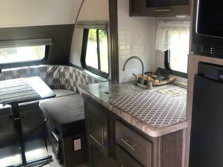 Hi, I'm Sam. My wife and I LOVE this little camper. It is our home away from home where we soak up nature, hike, paddleboard and recharge. (Inflatable Paddleboards are available to rent!) Perfect size for pulling/parking easily and great for beginner RV enthusiasts. We updated the bunk bed mattresses with an extra 3 inches of latex/memory foam so they sleep very comfortably. If you bring the kids along fold down the table into a queen size bed and enjoy waking up to the views of nature and hitting the trails. Detailed instructions on how to use everything will be provided for smooth operation of the bump-out/fridge/propane gas stove/bathroom/water tanks etc...our RPOD we call "Rodger" has it all. We have all that you need for a great getaway just bring your clothes and food. Get out there!