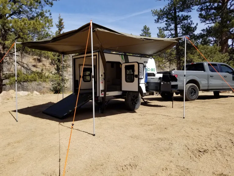 This No Boundaries trailer is equipped with everything you need to go explore the back roads of Colorado or beyond. It has off road tires and suspension, air conditioning/heat, a huge 270* Foxwing awning, queen size folding mattress with fitted sheet, screen door, roof rack, 2 burner stove, electric cooler/freezer for food, outdoor outdoor shower! Better than a tiny teardrop trailer, but still small enough for easy towing!