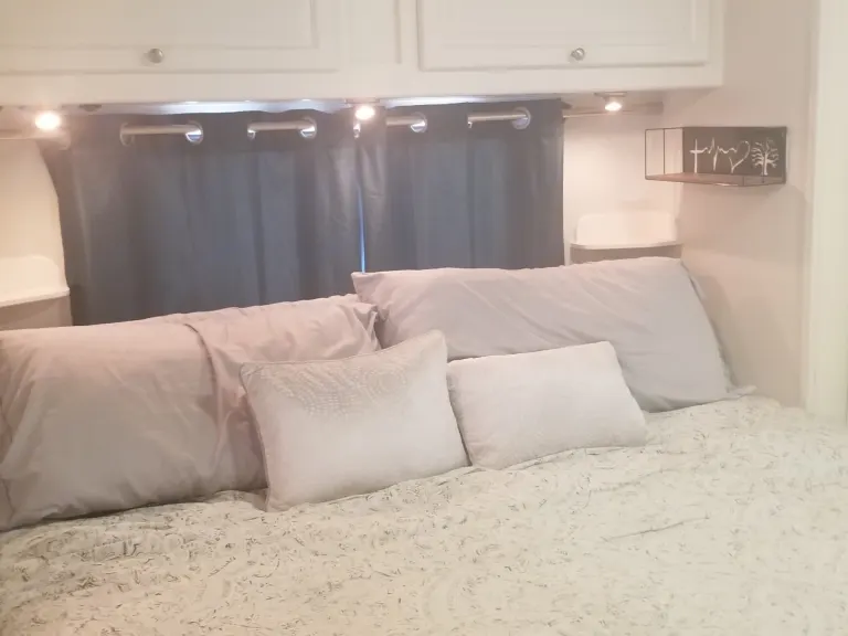 Check out this beautiful Super C! Modern, refinished interior with all the best amenities. Please Note: Minimum rental period is 6 nights. RV sleeps up to 4 adults with 2 of them sharing the master bed. Bunks are sized for children, and children can double-up in the dinette and overcab beds. We focus on family rentals to people who are experienced with RVs and/or big rigs. Our maximum bookings for long-distance trips has been reached for 2022. The RV is available for regional use for the rest of 2022 with a maximum mileage of 1,000 miles per booking. 100 miles free per night of rental, and the mileage overage rate is $0.35/mile.Kitchen with all supplies, including appliances such as a Nespresso machine and Instant Pot. Everything you need, including 2 Zero Gravity chairs and other chairs. Kids will love the bunkbeds and the overcab bunk. The dinette also turns into a full-size bed. Spacious master bedroom with king bed. Full side slide, plus master bed slide. Easy auto-leveling! Rearview camera always on, so you can always see what's behind you even while driving on the highway. Has Blue Ox vehicle attachment should you have a car with the receiver. Also has 2 inch towing hitch. Amazing sound system! Unique to RVs - this RV has 6 seatbelts so you can keep your family as safe as possible. We know you'll love your time in this RV! Weekly rate discounted $50; monthly rate discounted 15%. What's includedLinens, Camping Chairs, Full Kitchen Supplies, Outdoor Mat, LED lights for campsiteOther things to noteRenters are responsible to return the RV to original pickup location. Abandonment fees and direct owner retrieval costs will be billed to the renter under any circumstance that the RV is not returned.We require renters to purchase the Preferred or Peace of Mind insurance. These include mobile mechanic. Peace of Mind includes Outdoorsy Concierge services and Accident Interruption.Renters are encouraged to purchase Trip Insurance and Interior Damage Protection coverage.