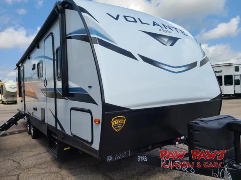And welcome to our brand new 2021 Volante. This camper can sleep 6 adults comfortably has many features to make your camping experience that much better! There are electric jacks, if you choose to setup your self.*** Pickup location for the camper can be modified upon request. Delivery may be available upon request depending on day of the week & location. Message us for more information. ***King bedroom with privacy door, full kitchen with double sink and recess lighting, storage closet/pantry, full bathroom with double sinks & full size stand up shower (this camper does not have a mini tub). There is also an outside shower that we ask you use to wash off any extra dirt/sand before entering the camper to help contain its cleanliness. There are interior and exterior speakers, an awning, fold out double seated couch, full wrap around table style that also fold down into a bed. This camper and its amenities will be growing as we grow with it!**Please note there is absolutely no tolerance of smoking, vaping or lighted candles inside the camper due to allergy reasons. There will be a professional cleaning charge if trace is found and charged as a damage fee to the renter.**** Please note pets are allowed with this camper with a max of two. Pets are not allow on furniture, and if ANY damages occur a fee will be charged based on repair cost. Pet fee is $10 per pet per night. **What's includedSheets, Pillows, Blankets, toilet paper, paper towels, trash bags, pots, pans, utensils. Please bring your personal towels and hygiene products these will not be provided.Also included: (2) fold up chairs, Big Jenga, Bean bags, UNO.