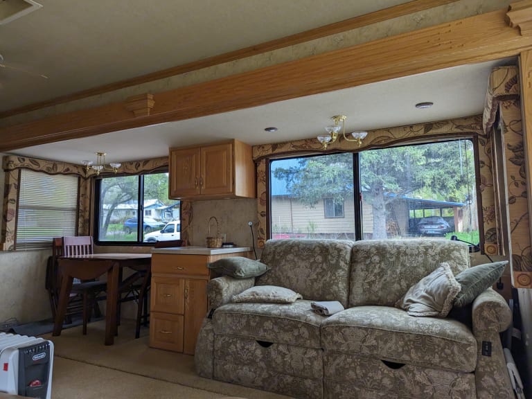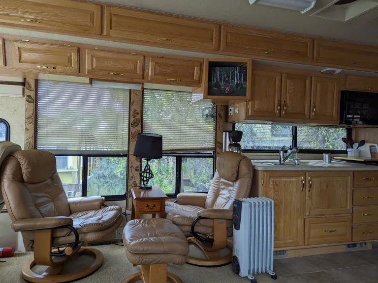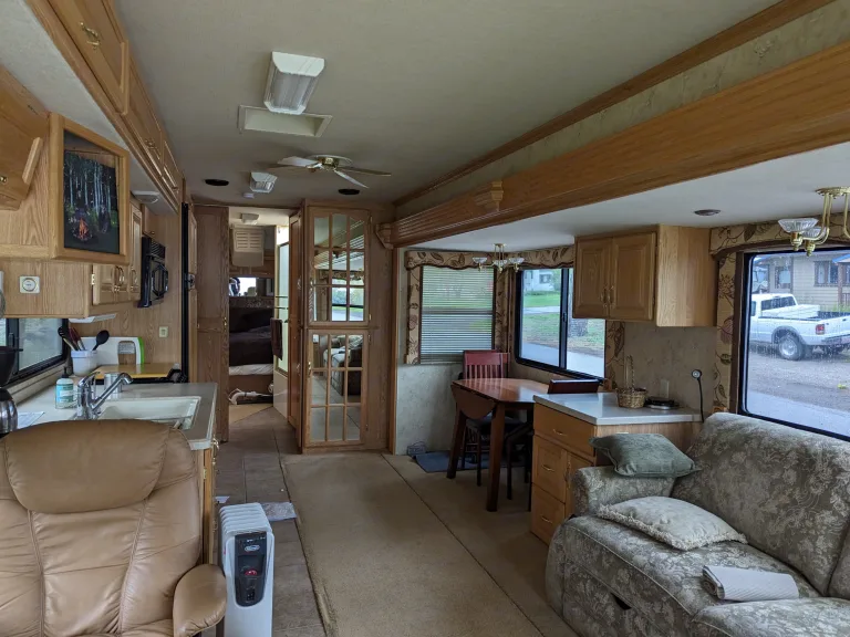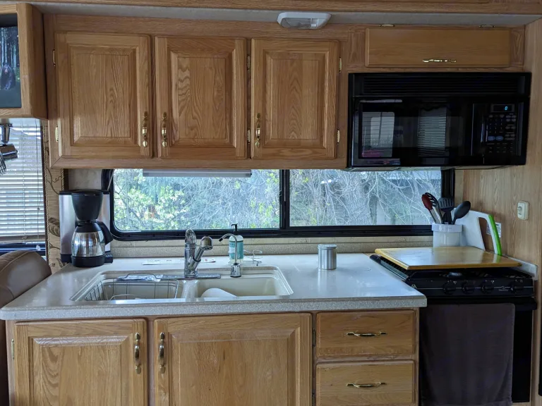 Comfortable space feels like a home away from home. This is an older rig, that has been well-maintained but still needs to be treated with care. When it is fully extended it truly feels so spacious and homey, it has a full-sized refrigerator and closet, making it great for long stays. What's includedAll of the sleeping arrangements will be matched with fresh linen and pillows. There is an option to fill the refrigerator/freezer with meals if requested (we run a full restaurant as well). Upon request, we can provide electric bikes, paddle boards, kayaks, and tents. Included are plates/bowls/cups/silverware for (8), dish towels, towels, sunblock, uno cards, and dominos. RecommendationsI recommend renting this rig if you are an experienced RV'er. It is an older model but is a great and reliable rig if you are familiar with RVs. It is diesel, wich is ideal for hauling your cars behind as you go on your adventure. Other things to notePlease no smoking and again recommended to a seasoned RV'er