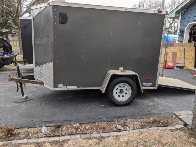 Want to move some stuff and need space? Going on a trip and need room to bring extra equipment? This lightweight trailer has 7 blade connection, brakes and new tires. It has quick connect wall mounted connections installed. Lock your door and hitch with provided locks to keep your possessions safe. Ladder rack on top to bring things that can't fit inside.Other things to noteNot responsible for damage to any of your items. Items will move around if not properly secured.