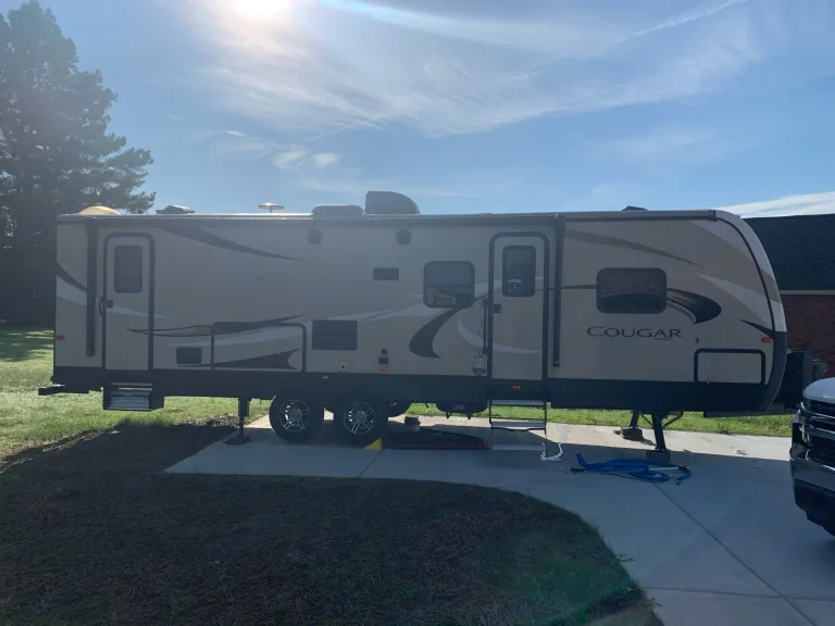 This camper is great for escaping the grind of life! The Cougar features a 55” Hdtv, AC, and a after market Ashley furniture couch with double recliners (RV furniture isn’t comfortable so we put in this plush couch)! The kitchen features a microwave, gas stove, fridge and double stainless steel sink! The outside also has an additional outside grill and fridge!When you’re ready to sleep at night you will have plenty of space! The rear of the camper features double bunks that will sleep 4 easily. The master bedroom features a camper king that has its own private TV added! The camper will sleep 6 comfortably and you can add a 7th if they don’t mind sleeping on the couch!The camper has electric jacks and auto leveling features to make camping a breeze!What's includedBedding and dishes not supplied