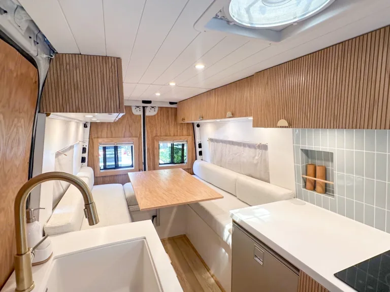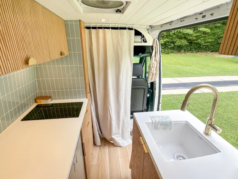 We had an amazing trip! The interior of the van is stunning and it is very thoughtfully stocked, not only with high quality kitchen utensils, flatware, pots and pans etc. but also things like the water hose and the outdoor folding chairs. The van itself was super easy to drive — the rear view camera and the lane assist features were especially great to have when you’re driving a new van. Melissa did a helpful demo/walk through before I left, was communicative when I had a question about something mid way through my week in the van, and she was also very kind about giving me space and time to unpack when I arrived for pick up and drop off. Possibly my only complaint was that it took my back a few nights to adjust to the bed but my sister (and my dog) both slept like babies so i think that’s just me lol overall you can tell the van is well cared for and even though it’s over two hours away from me I’d def rent again!