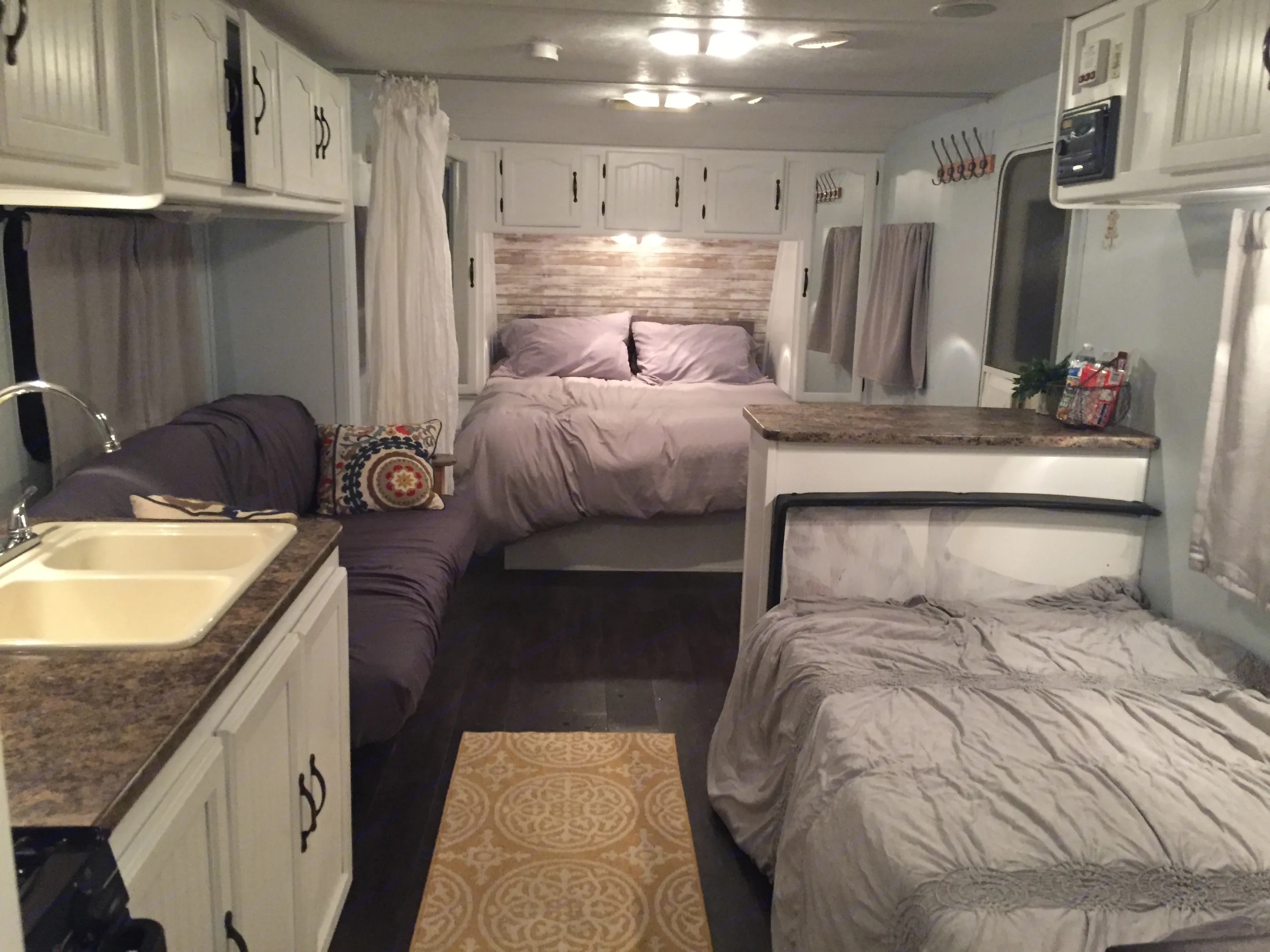 We have a beautifully remodeled, 30' "Glamper". It sleeps seven, and comes fully stocked with all the essentials: flat screen TV with DVD player, Keurig coffee maker, wine glasses, gel memory foam mattresses in the bunk beds, new AC and heater unit, and more. Enjoy the outdoors with the comforts and luxury of "The Glamper"! #charlestonglamper for more information!