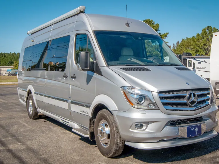 This Interstate Grand Tour EXT Class B Touring diesel coach offers interior seating for 6 individuals and sleeping accommodations for two.Step inside and find a convenient conversation area with the driver and passenger seats swiveled around. There is a removable table between the driver and passenger seat which allows for ease while eating or easy ability to play a game. Behind the driver's seat there is a work station and a LED TV.The galley has a sink, two burner range, and flip-up shelf along one side. The opposite side offers a large pantry and refrigerator with freezer.As you move toward the rear notice a convenient wet bath on your right which includes a toilet, small sink and shower.Continue further back and find another great conversation area that can convert to comfortable sleeping for two. There is a lounge across the back with seating for three, including safety belts, an ottoman with overhead wardrobe, or in place of the overhead wardrobe you can choose an optional seat, LED TV, and an additional seat, plus in the center a removable table.