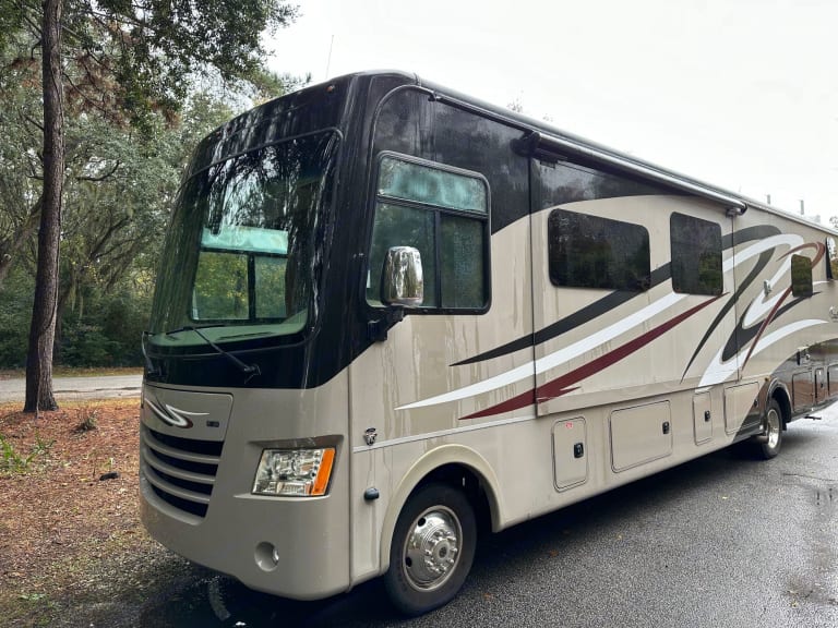 Our 2015 Coachman Miranda is a dream rig for the whole family. Queen Bed in the Master Bedroom, bunk beds for the kids, drop down Bed From the Ceiling, Sofa Bed and dinette conversion bed. Full bathroom with tall sand up shower. Washer and Dryer, 3 TVs One in Bedroom, One in Living Room and One TV Outside. Back Up cameras with side cameras make it easy to drive. Tons of Storage in the compartments underneath the RV, in the Closet and in the inside cabinets. Full Kitchen with Sink, Microwave, Stove and Oven. 2 AC units one in living room and one in bedroom. Full Heating system in floor vents, Full Power, Water, and Sewer Hook Ups. Outside Shower. Power Awing and More. Our Family loves this RV and know your family will love it too.What's included2x camp chairs, camping table, linens, cookware, utensils.