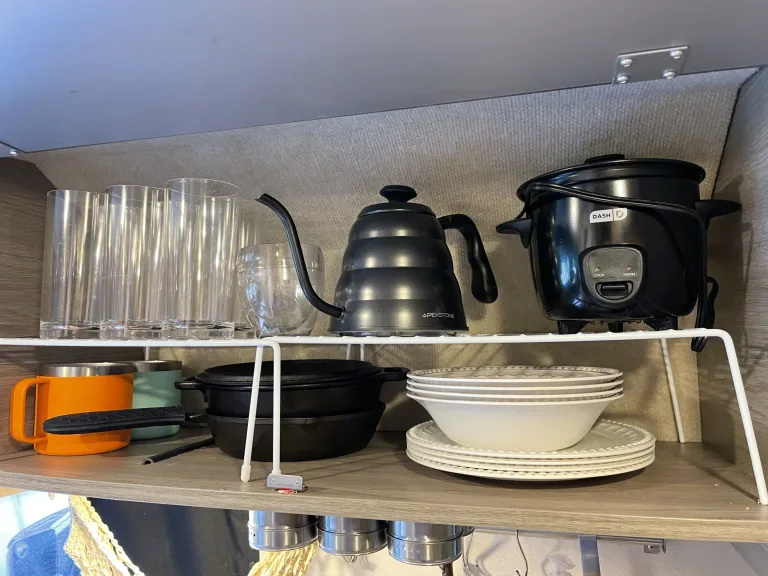 What's includedBed linens are provided (sheets, blankets, and pillows) if you select as a free add-on. Towels, mattress cover, and full sized sleeping bag for the pop-top bed are included automatically. Dishes, pots and pans, silverware, coffee mugs - all you need for dining is included except the food. A Nespresso Vertuo espresso machine, coffee pods, and a milk frother as well as a french press are provided. Outdoor folding table and seating, outdoor mat, and a solo stove ranger ane included in your rental.