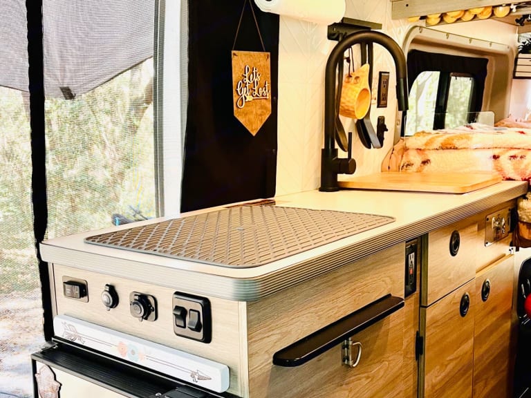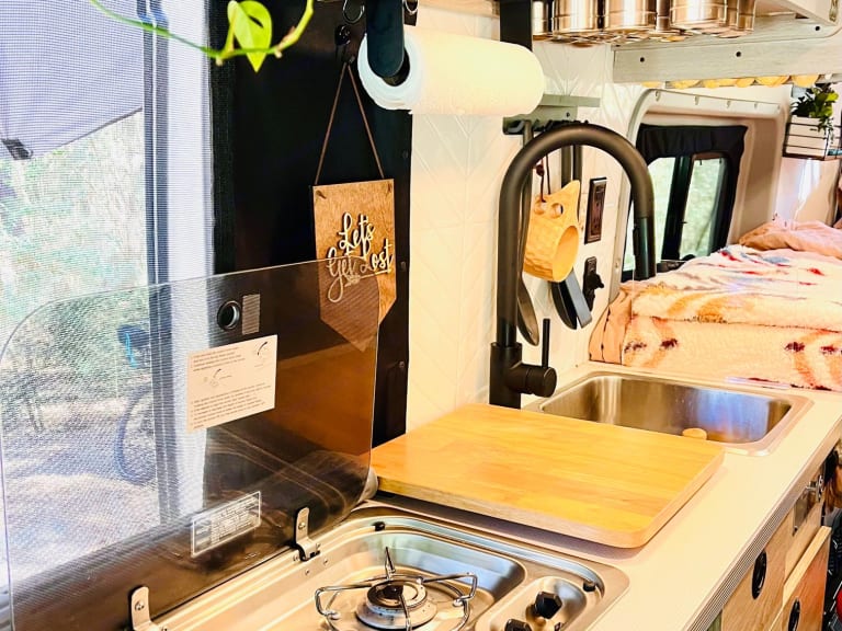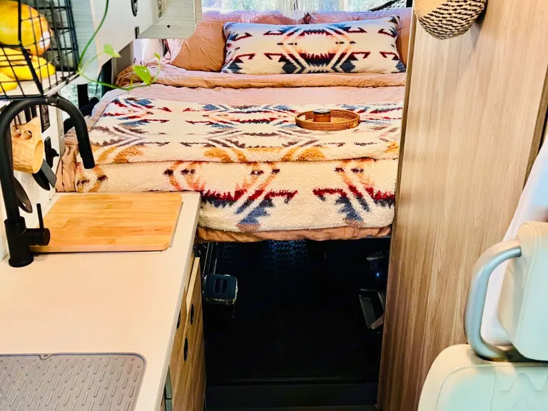 Our 2022 Winnebago Solis seats and sleeps 4 people in comfort and style. Enjoy the best that van life has to offer in a meticulously clean, stylish, fully stocked adventure vehicle! This nimble campervan will fit almost anywhere. We have upgraded the stock murphy bed with a fixed, RV king sized bed - no need to assemble your bed when you’re ready to sleep, and it will accommodate taller people much better than the stock mattress while providing more sleeping space for two. A major comfort upgrade!Experience the convenience of cooking in the van or on the included Solo Stove Ranger (be sure to select as a free add-on); enjoy a cappuccino or French press (Nespresso pods included in your rental!); bathe in the privacy of the van or set up the outdoor heated shower. Roast marshmallows over the fire of the Solo Stove fire pit (where permitted).Camp chairs, an outdoor table, cookware, dishes, silverware, Nespresso machine and French press coffee maker are all included in your rental. Linens are included unless you request to bring your own.s. The water and propane tanks will be full when you start your adventure. Power is provided by solar panels and a quieter-than-average Onan generator.This rental is cleaned thoroughly between guests. Sheets are washed with bleach for maximum sanitation. Be sure to select bed linens as a free add-on if you want to include them in your rental; towels and waterproof mattress pad are included automatically.Please Note: renters are required to stay at campgrounds with electric hookups (30 or 50 amp - we have an adaptor for either type). This vehicle is not equipped to handle rough roads and has a very low clearance due to the position of the generator. Most established campgrounds (state and national parks, etc) are okay.