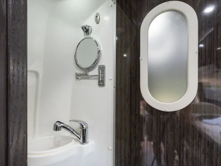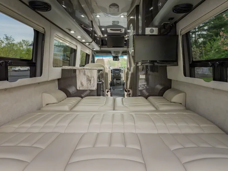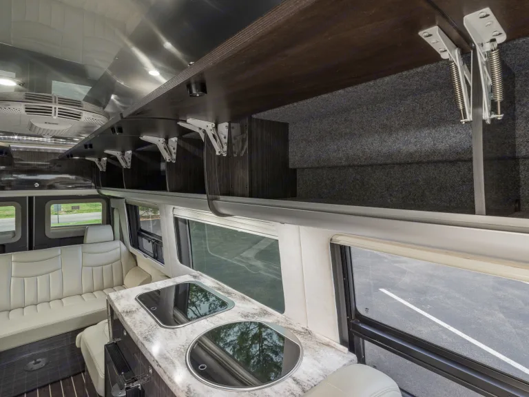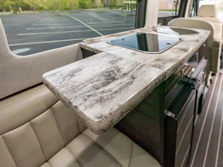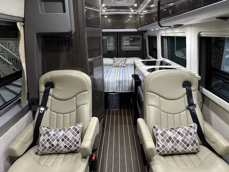 The perfect combination of comfort and class in a very easy-to-drive package. Ideal for couples who want simplicity, but don’t want to sacrifice luxury. Unbelievably comfortable leather seating and a wonderful queen-size bed with 3” memory foam topper make this rig dreamy. Tons of overhead storage and 2 TV’s with Amazon Firesticks. Extra rear storage bin available for use…keeps all of your dirty gear out of the interior. Combine this with a kitchen and wet bath, and you have no need for any other facilities while you camp. And setting up camp is as easy as parking and hooking up water and electric…no slides to fuss with.