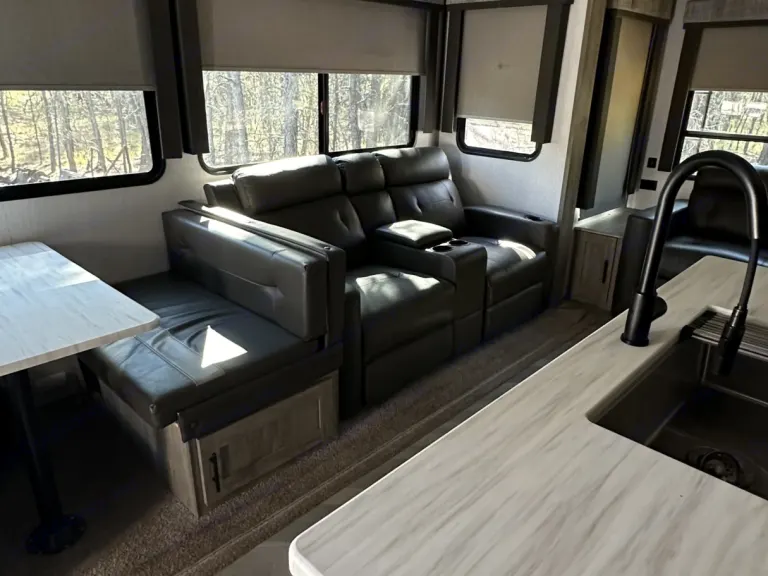 Discover the perfect blend of comfort and adventure with our Heritage Glen fifth wheel camper. This spacious and stylish camper features a contemporary interior with all the essentials for your travels. Enjoy cooking in the gas oven and range, relax in the cozy living area, and rest easy in the comfortable master suite with a queen-sized bed. With convenient amenities like multiple slide-outs and an electric fireplace, every journey is filled with comfort and relaxation. Experience the joy of camping in style – reserve your spot today!What's included• Toilet paper