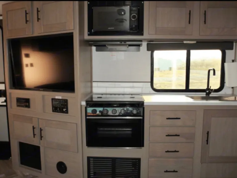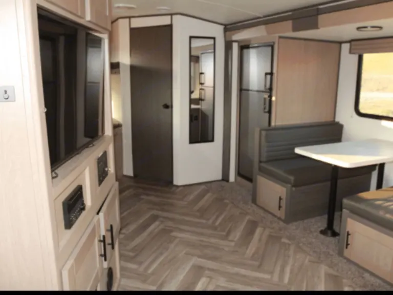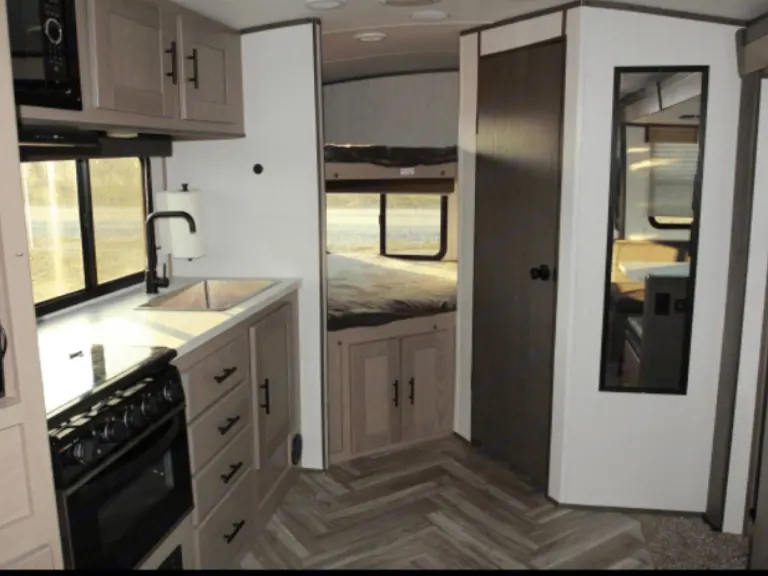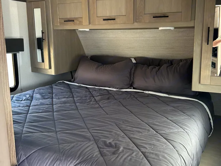 Please note: we do not offer gorge delivery.The trailer is very spacious with a large slide out and decent sized bathroom. There are memory foam double bunk beds, a dinette, fold-out sofa bed, and a king memory foam bed. There is a 42 inch tv and also an outdoor kitchen area with mini fridge and grill.What's included- [ ] Bedding: sheets, blankets, and pillows