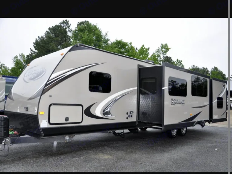 Our beautiful Kodiak 300BSL (37' bumper pull) is still like brand new, it features a full size queen master forward of the trailer, a full size stand up shower which is connected to the master. The living room/ kitchen area has two spacious slide outs that transform the space into a very comfortable seating area. The kitchen features an island counter w/sink, gas stove and oven and full size refrigerator that can run on either gas or electric. The back room has a slide out as well featuring two full size bunks and a dinette table that will convert to a bunk with a fold down bunk above as well. The trailer could easily accommodate 6 to 8 sleeping easily. The trailer is all aluminum and fiberglass making it lightweight for a trailer of this size.