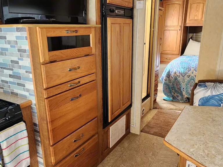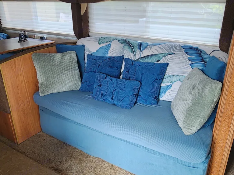 My Jaco is a 2006 Ford Econoline 450. It is 31 feet long, has a dinette that slides out, a pull-out awning, and sleeps 6–7 comfortably. In first-class condition, everything is in good working order and comes with a generator, a full bath, and a fully supplied, complete kitchen. Has everything you need for camping . Aboard, it has 2 queen beds and 2 single beds and is very child and pet-friendly. The couch and dinette beds will sleep children and adults comfortably, and the overcab and rear bed are very roomy.