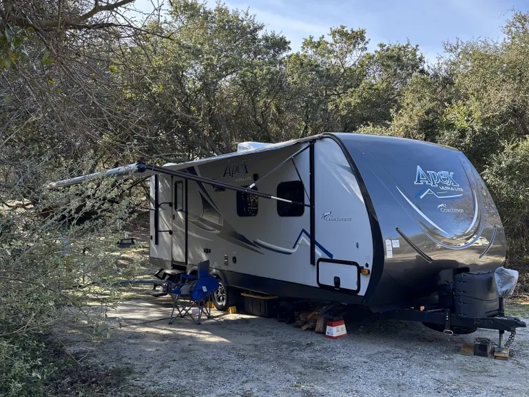 Our camper is a 2018 Coachmen Apex ultra light. It’s the perfect couples camper but can also accommodate an extra guest if needed. Additionally, it’s awesome if you’re new to camping or have never camped before since everything is so easy to use. We have meticulously maintained our camper so it’s in good working order and super clean inside and out. It’s got an upgraded (real) queen mattress, big bathroom, upgraded shower head that’s just as nice as a home shower. The slide out makes it feel spacious inside and the awning is really large, running almost the entire length of the camper. Also there’s plenty of storage if needed. Tank storage is not an issue since it’s got a separate galley tank for just the kitchen and a grey water tank..We also have an extra portable tank for grey water if needed. The hitch weight is 510 pounds and the camper weighs about 4000 pounds, but can accommodate an additional 3000 pounds onboard so it’s light enough that most trucks can tow it easily. We also have a weight distribution hitch and camera system for use. Pick up and delivery times are flexible. Delivery may be an option, please ask if interested. What's included• Please see picture for inventory. If you don’t see something listed but need/want just ask and we might be able to include it. Our goal is for you to only need to pack food and clothes. RecommendationsHave fun!Other things to notePets are welcome! Renters can use our weight distribution hitch and furrion camera system if wanted. We will also provide a binder with camper information at check in. We ask that you please read it for important information on safely using our camper.