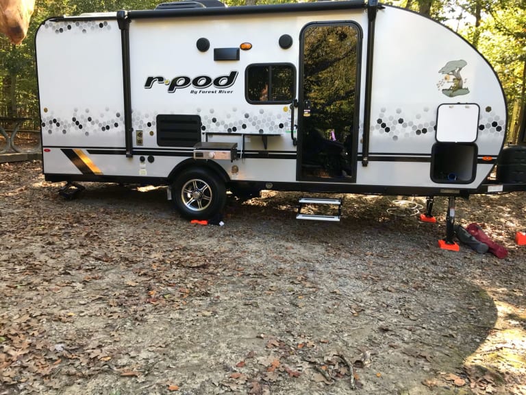 This well maintained 19 foot travel trailer is perfect for all campers. It contains a murphy bed and two twin bunk beds with a sofa that seats 5. This camper has the largest bathroom layout of any Rpod model. For a compact camper, the floorplan is perfect and spacious. This dynamic camper allows for ease of trailing to create all the family memories without all the weight of a bigger size unit. The unique kitchen design with large pantry, 6 cu ft gas/electric refrigerator, huge sink & tons of interior storage make packing a breeze while the central vacuum will make cleaning up stress free. Take advantage of outdoor cooking on the optional griddle while taking the smell and mess out of the indoor living space. All cookware and utensils provided. Cleaning supplies stored in the camper. Linens not included.
