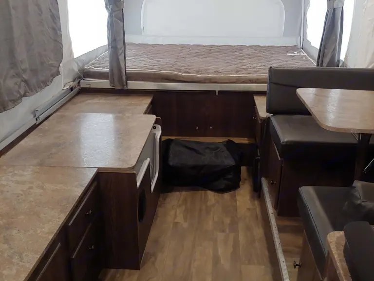 Awesome tent trailer with toy hauler. Complete with off-road freedom package that includes oversized tires. Dinette slide-out on the side of trailer for additional interior space. Interior and exterior shower. Toilet. Wi-Fi router. Bluetooth stereo with outdoor speakers. Awning and outdoor BBQ. Heated beds. Electric lift... The trailer goes up with a touch of a button.What's includedFresh sheets on the bed. Pans, plates, & utensils. A couple family games.Other things to noteVideo showing trailer in detail:https://www.youtube.com/watch?v=zw5Wrm0pTgI