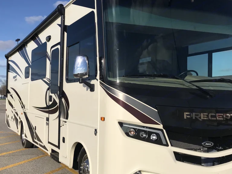 Our 2018 Jayco Precept 29V sleeps 6 people comfortably and is capable of towing a vehicle or trailer for your ATVs or motorcycles up to 5,000 pounds. We have modified the dinette into a beautiful bar that conceals the washer and dryer units. The coach also has an outdoor kitchenette and entertainment center, all under a large awning. Included for your enjoyment: bedding, linen, cookware, dishes, utensils, 6’ table, gas grill, gas griddle, lawn chairs and extra storage. space.*Note that due to the dinette into bar conversion, there are only 4 seatbelts available.