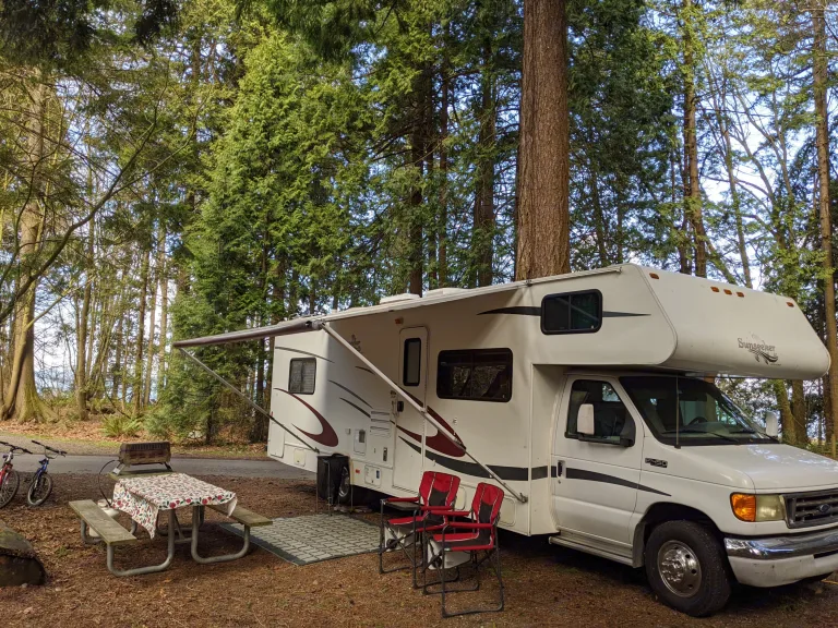 Make use of our family motorhome that we have slowly modernized and adapted for the ultimate camping experience. Our rig has all the basic necessities, plus a few more creature comforts to make your trip more enjoyable.This motorhome features a large slide that opens up the main kitchen and living space, but also has a nice design that still allows you to access everything and move about freely when the slide is in.As for sleeping arrangements, there is a king bed over the cab, a couch that folds into a bed, the dining room table that collapses into a bed, and a queen bed in a separate bedroom at the rear.Our kitchen has all the amenities, including cookware such as pots, pans, cutlery, etc. If plugged in, or running on the generator, you also have access to the built in microwave and our Keurig coffee maker. The kitchen and dining area includes a lot of cupboards for your various food items, but there is also a really nice slide out pantry in addition to the standard features such as fridge, stove, microwave and sink.The bathroom features a toilet, porcelain sink and shower with glass doors. There's also lots of storage for linens and other items.All options work as intended and the coach is easy to drive with good visibility, cruise control and air conditioning.The listed price includes all towels, linens, 20lb propane bottle, 2 Burner BBQ and propane fire pit (handy for summers when burning ban is on).