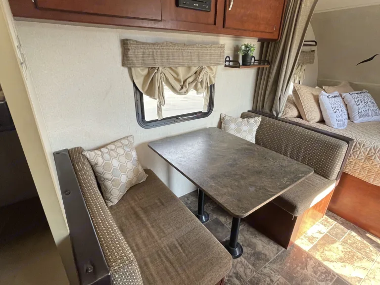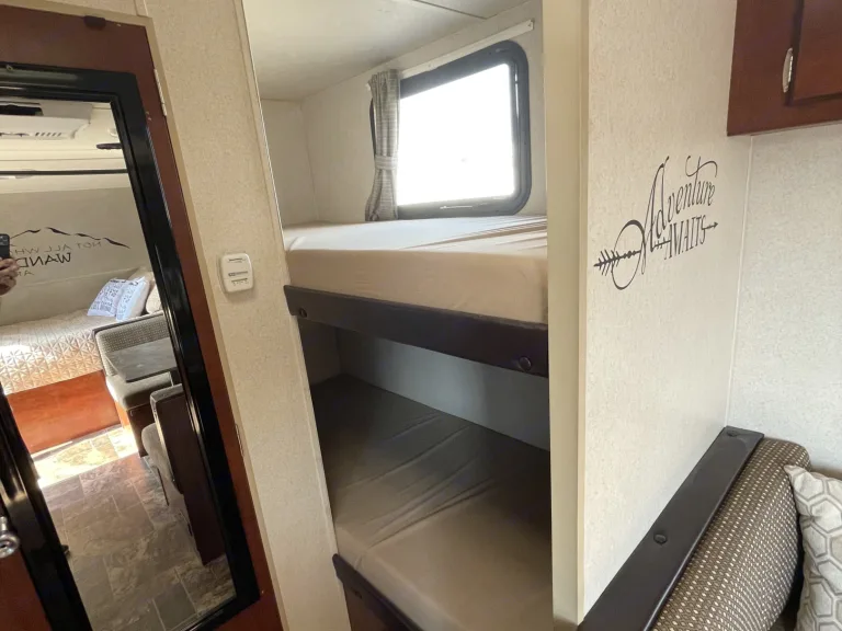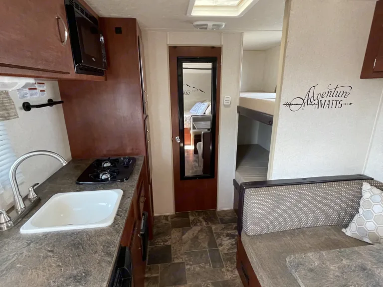Welcome to our Evo! 3,000lbs dry so its easy to tow with most Mid size trucks and SUVs. It comfortably sleeps 5-6 people. Has a good size bathroom and shower. TV with DVD player. Radio / CD player / Bluetooth. A/C blows cold. Mini fridge inside and plenty of storage space.***Message me for availability before sending request. My calendar is not always up to date***It's easy to set up and get to relaxing! What's includedWe include utensils and pans. Cleaning supplies. Toilet paper. Beds have memory foam mattresses (Queen and Bunks ). For the outside we include foldable trash can with trash bags, and string lights that hook to the awning.Other things to note We hope our trailer makes wonderful memories for you and your family/friends as it has for ours. Please take care of her as if she was yours.