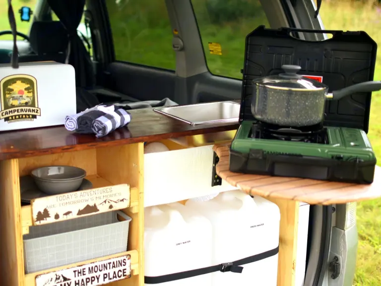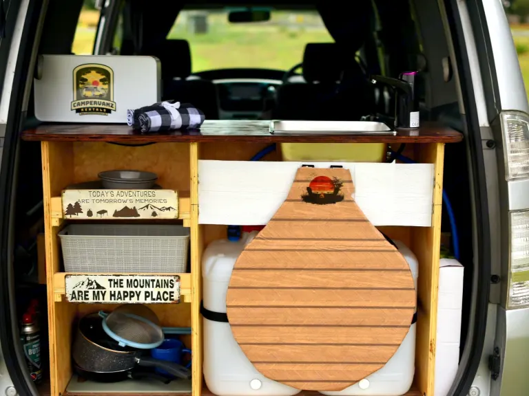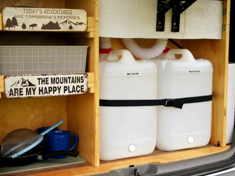 Smart Utilities: Freshen up after a hike with the 12V external shower and enjoy the convenience of an electric water tap.