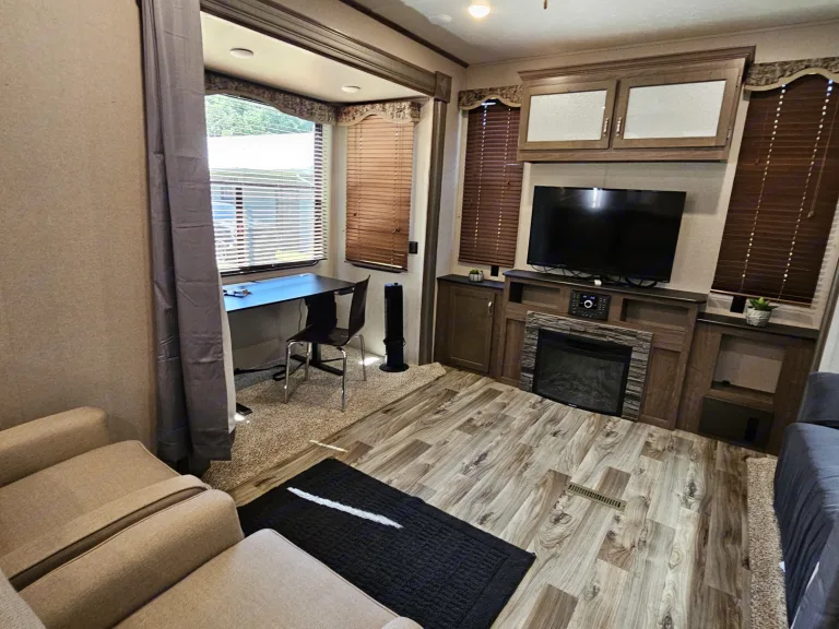 "Madame" is the 'king' of all campers - A Home Away From Home. Step into a gorgeous luxury rig with tall 8' ceilings, large bay windows that add light, stainless steel appliances, a built-in vacuum, and a master king bed with memory foam topper and chifforobe with plenty of storage! This rear living unit gives you the space of your own den with a fireplace to enjoy a movie, music or relax on a recliner or convertible couch.We fully stock this unit and provide fresh linens, towels, pillows, dishware, cookware, camp chairs, and much more! Just bring your food and yourself!This unit is Enormous at 41' long and requires a large site to house it. Delivery only. Aren't sure if it will fit? Please give us a call or text/email! We have 15+ units to choose from and can help you decide what is best for you. Rent R RV by Rescue Rentals LLC. *Please Confirm Delivery/Pickup Availability*What's includedWe fully stock this unit and provide a memory foam topper, fresh linens, towels, pillows, dishware, cookware, utensils, camp chairs, and much more! Just bring your food and yourself!RecommendationsWORLD EQUESTRIAN CENTER OCALA - HITS - RAINBOW SPRINGS - DAYTONA SPEEDWAY - HORSE SHOWS -