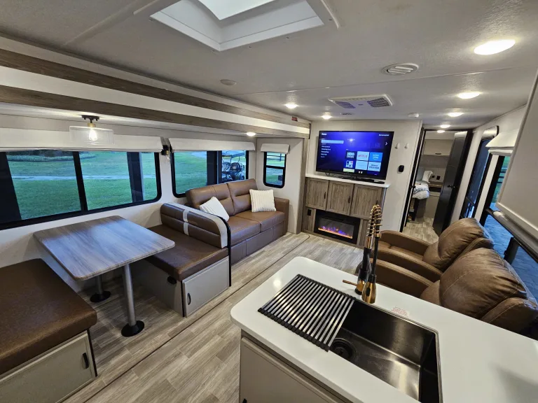 At Rent R RV, our mission is to put your mind at ease when booking with us, regardless of which RV you rent. We offer complimentary amenities such as memory foam bed toppers, clean linens, bath towels, utensils, cookware, and camp chairs with our units. We make glamping easy at your desired location and offer convenient delivery options too!