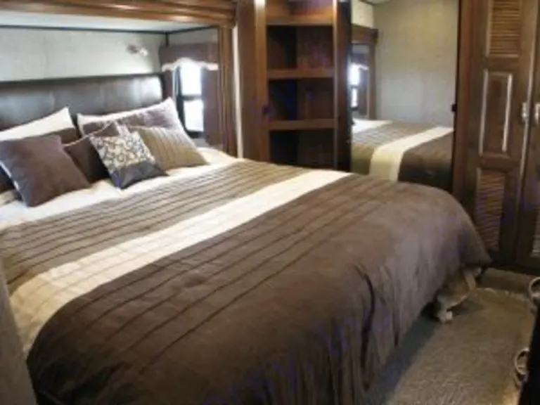 Get back to basics and enjoy a family camping vacation in Luxury. This 44' RV has a raised full den with two sofas hide a bed (queen & double beds) and two rocking chairs, electric fireplace, 50” TV/DVD/CD with surround sound, large kitchen that includes full size pantry w pull out drawers, 23 cu ft ss refrigerator/freezer, propane stove/oven and microwave, dining room table w 4 chairs with lots of cabinets and storage space, 3pc bathroom with shower and hot water on demand, large master bedroom with king size bed, cedar lined walking closet, shelving closet, dresser and TV. You will also enjoy the small outside fridge, two BBQs, two large electric awnings and three extra-large storage compartments. All kitchenware (too much to list), linens including sheets, blankets & pillows, lawn chairs, beach cart/chairs/umbrella, outdoor carpets,propane and variety of games are included. This unit is also prepped for a generator and solar panel however, they are not included. Full demo is provided upon pick up and delivery/set up may be available.