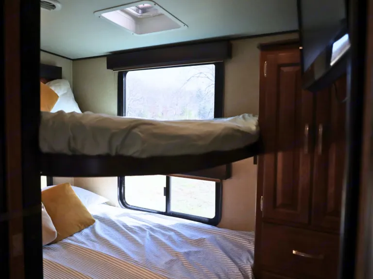 Pet-friendly (upon approval)Delivery: We’ll bring Reflections in Paradise to your reserved campsite, set it up, and walk you through how everything works—so all you have to do is show up and enjoy.Want to stay right on the farm? Ask about booking this RV on our 20-acre regenerative homestead in Clarkrange, TN—complete with trails, farm-fresh eggs, organic produce, and peaceful views.Want some farm fresh eggs, or organic chicken for your vacation? Let us know, we can arrange that!What's includedSleeping Areas