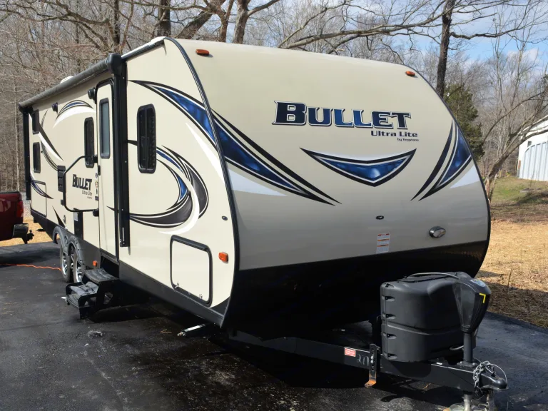 We would like to welcome your family for an RV experience. Most families have pets that they consider their family and we welcome them to join you in your camping adventure. Our camper comes with 2 full sized bunk beds, a dinette that converts to a bed for a small child, a fold out sofa, and a separate bedroom with a queen bed that also has a small 19" TV. The living room area has a 32" TV with DVD player, radio, and Bluetooth to connect your phone to the indoor speakers. The bathroom is a full bath with tub/shower combo, sink and toilet. The kitchen is fully equipped with all of the utensils and place settings for up to 4 people. For outdoor living we provide a pop-up tent for shade and the bright exterior LED lighting will extend your camping experience well into the night. The camper also has an outdoor kitchen with bumper attached grill as well as an outdoor shower, if needed. On those rainy days, we have also included some board and card games for fun family game nights.Required Fees: