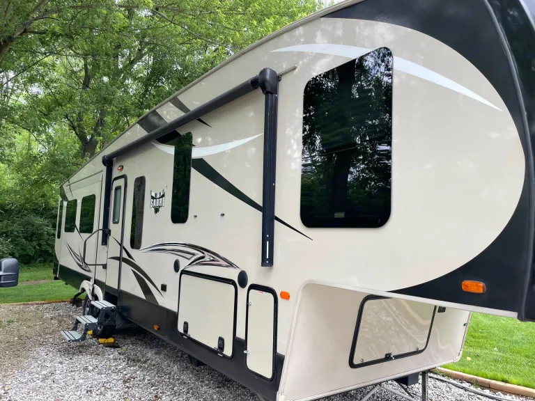 Other things to noteThis is a BIG camper. If booking a campsite, make sure to find that will fit a Fifth Wheel that is 42 feet long and has slideouts on both sides. Recommend getting on with 50 amp electrical, water and sewer hookups.